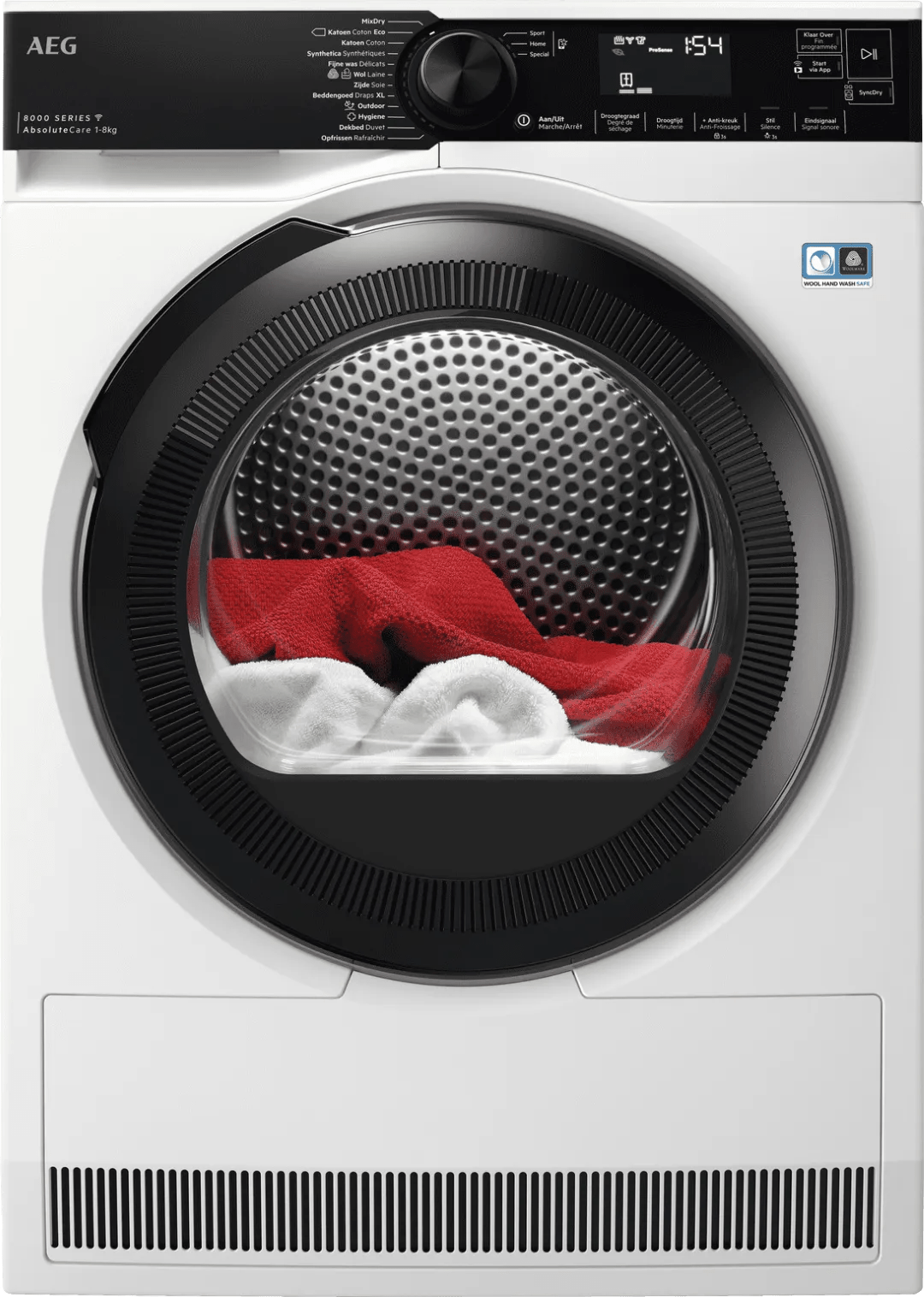Je favoriete outfits gaan langer mee dankzij de AbsoluteCare techniek van de AEG TR86CBC86 Ecoline warmtepompdroger. De sensoren meten precies wat voor wasgoed er in de trommel zit en passen hier de trommelbewegingen op aan. Zo slijt je wollen trui of linnen blouse minder snel. Je droogt nooit te heet dankzij de SensiDry sensoren. Deze passen het droogprogramma aan op iedere lading, zodat je kleding niet krimpt. De wasdroger heeft 8 kilogram vulgewicht. Hiermee droog je middelgrote en kleine ladingen was. Je droogt je was met 1 van de 25 programma's voor bijvoorbeeld katoen, sportkleding of beddengoed. Met energieklasse C bespaar je tot &euro: 20,- per jaar op je energierekening.