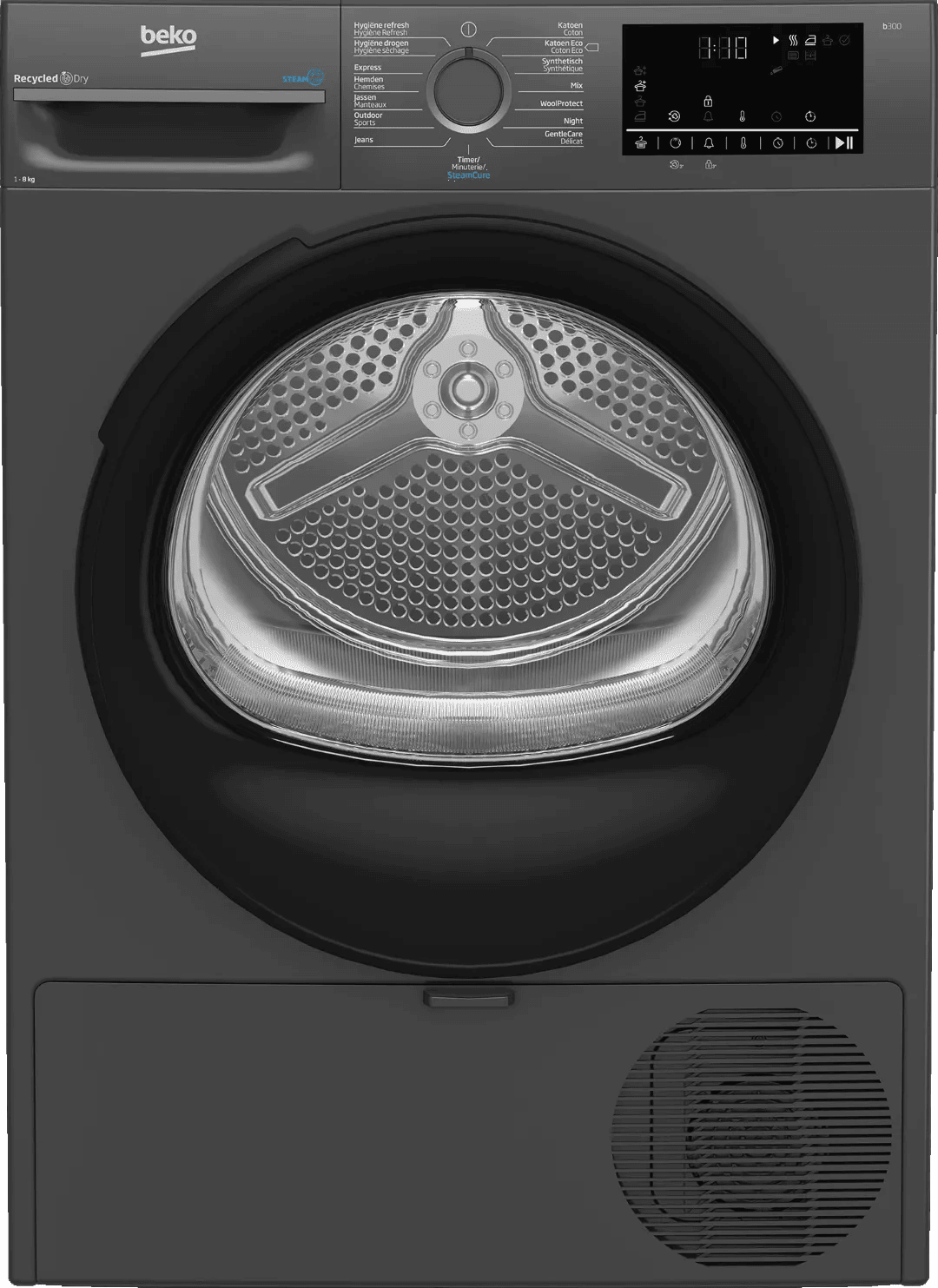 Je droogt kleine en middelgrote ladingen wasgoed met de Beko BM3T3824A droger. Met 8 kilogram vulgewicht heb je ruimte voor bijvoorbeeld het beddengoed van één tweepersoonsbed. Je kiest uit 1 van de 15 verschillende droogprogramma’s voor je was. Wil je je muffe shirt uit de kast snel opfrissen? Kies dan voor SteamCure. Hiermee fris je kleding op met stoom zonder wasbeurt. Daarnaast vermindert de stoom kreukels, waardoor je minder strijkwerk hebt. Heb je last van allergieën? Met Hygiëne drogen droog je op een hogere temperatuur, waardoor bacteriën en allergenen verdwijnen. Heb je een kleine lading met gemengde kleding? Dan kies je voor het mix-programma. Zo sorteer je je kleding niet vooraf.
