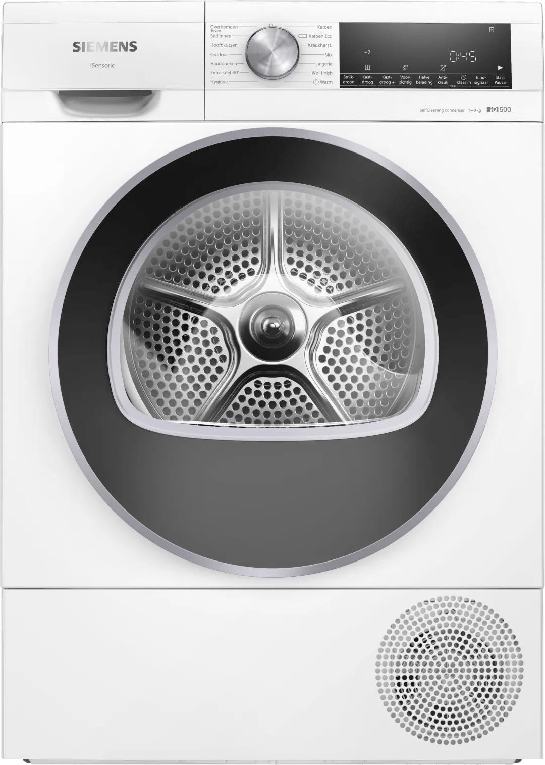 Kies voor de meest energiezuinige droger van Siemens met de Siemens WQ45G2D5NL warmtepompdroger. Dankzij energieklasse C bespaar je met deze droger &euro: 200,- op de levensduur. Daarbij bespaar je ook veel tijd. Dankzij het SpeedPack programma droog je iedere was gegarandeerd snel. De warmtepompdroger beschikt over een vulgewicht van 9 kilogram, maar ook met een halve belading droogt je was zo efficiënt mogelijk. Met de SelfCleaning Condenser spoelt je droger automatisch schoon tijdens het drogen, waardoor de wasdroger energiezuinig blijft. Draait jouw dekbedovertrek ook altijd in elkaar met je andere wasgoed? Dat is verleden tijd. Met het beddengoed programma wisselt de draairichting van de trommel, waardoor jij na afloop geen tijd kwijt bent aan het zoeken van je 'verdwenen' sokken.