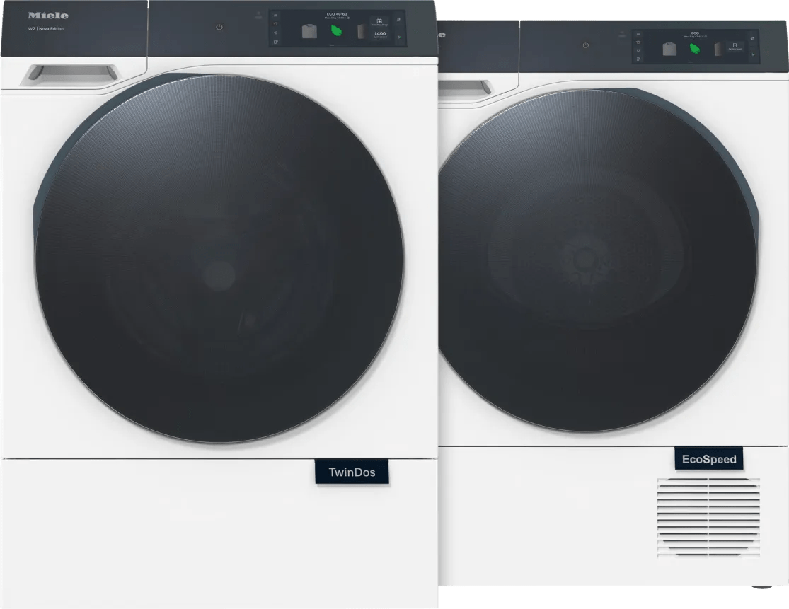 Miele WQ 1200 WPS Nova + Miele TQ 1000 WP Nova wasmachine en droger set verzorg je je was extra goed.