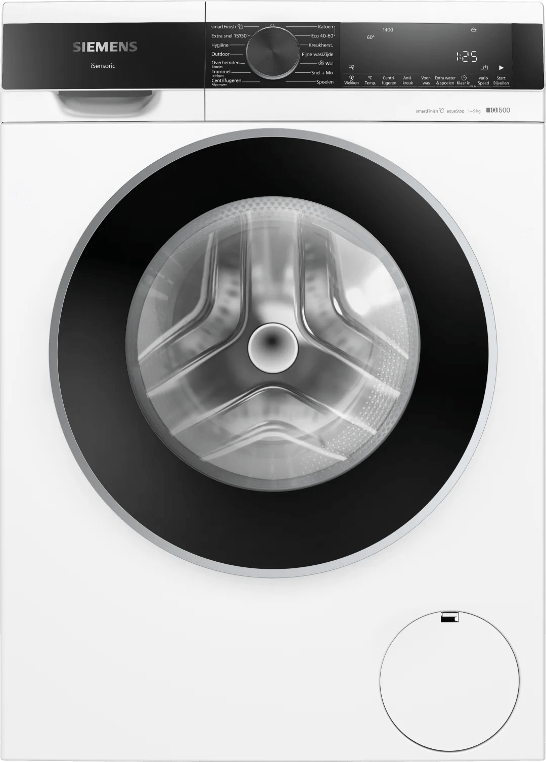 De Siemens WG44G2ZBNL (iQ500) vermindert strijkwerk dankzij de smartFinish stoomfunctie. Je bent hiermee sneller klaar met strijken. Na 20 minuten haal je je shirt met minder kreukels uit de trommel. Ook handig is dat je veel ruimte voor je was hebt. Met 9 kilogram vulgewicht stop je een grote lading beddengoed in de trommel. De wasmachine bespaart met energieklasse A veel energie. Over de levensduur betaal je tot &euro: 220,- minder energiekosten. Heb je je favoriete kleding snel nodig? Kies dan voor varioSpeed, waarmee je tot 65 procent sneller wast. Zo kan je 's avonds op tijd naar de sportschool. Zet de wasmachine ook aan als je thuiswerkt. Met 70 decibel hoor je amper dat hij aanstaat.