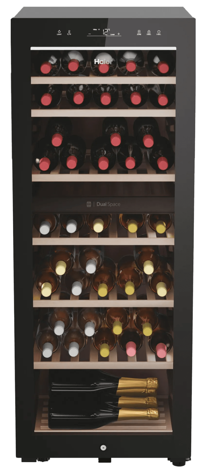 In de Haier HWS77GDAU1 bewaar je jouw wijnvoorraad van maximaal 77 flessen. Door de 2 verschillende temperatuurzones bewaar je rode en witte wijn op een andere temperatuur. Je plaatst je wijnklimaatkast zonder problemen in een open keuken of woonkamer, dankzij het geluidsniveau van 37 decibel. Lopen er kinderen in huis rond? Met het slot bewaar je jouw kostbare wijnen veilig achter slot en grendel. Daarnaast behoudt je wijnvoorraad door het uv-werende glas zijn originele smaak.