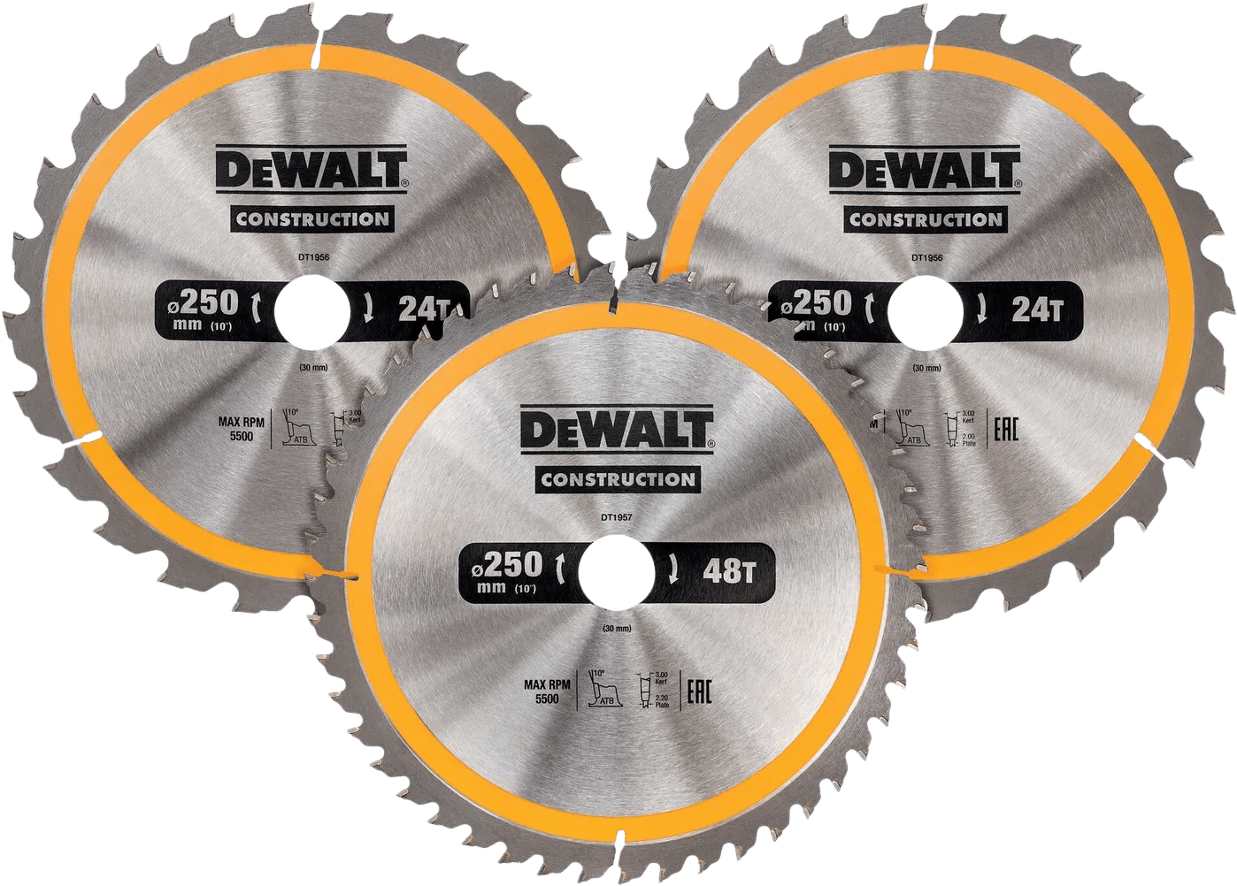 DeWalt Cirkelzaagbladenset 250mm 3-delig 24T (2x), 48T