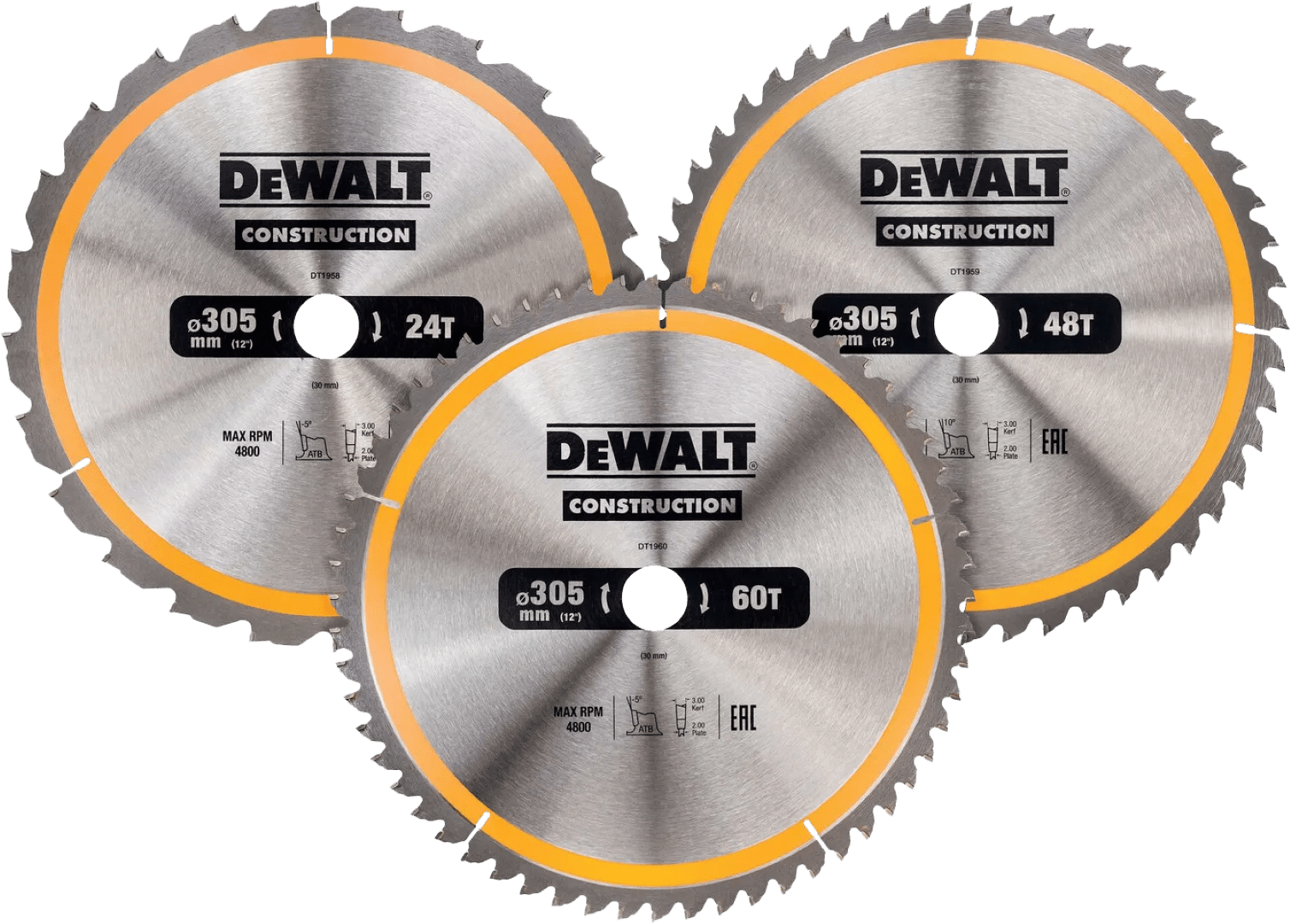 DeWalt Cirkelzaagbladenset 305mm 3-delig 24T, 48T, 60T